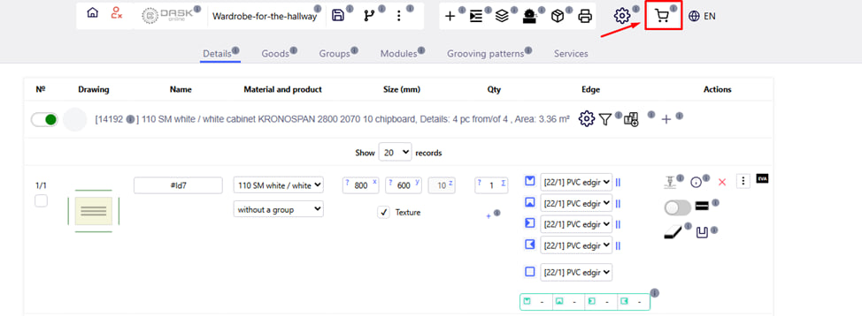 Klicken Sie auf das Symbol „ Warenkorb “ in der oberen rechten Ecke, um die Bestellung zu berechnen .