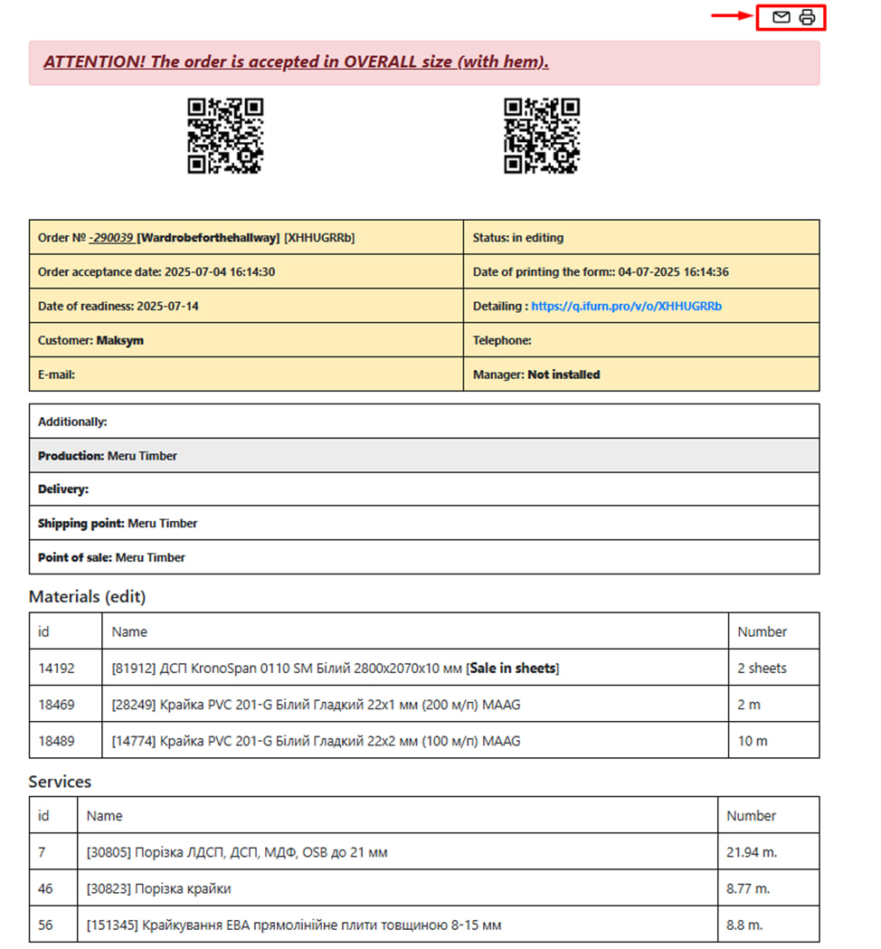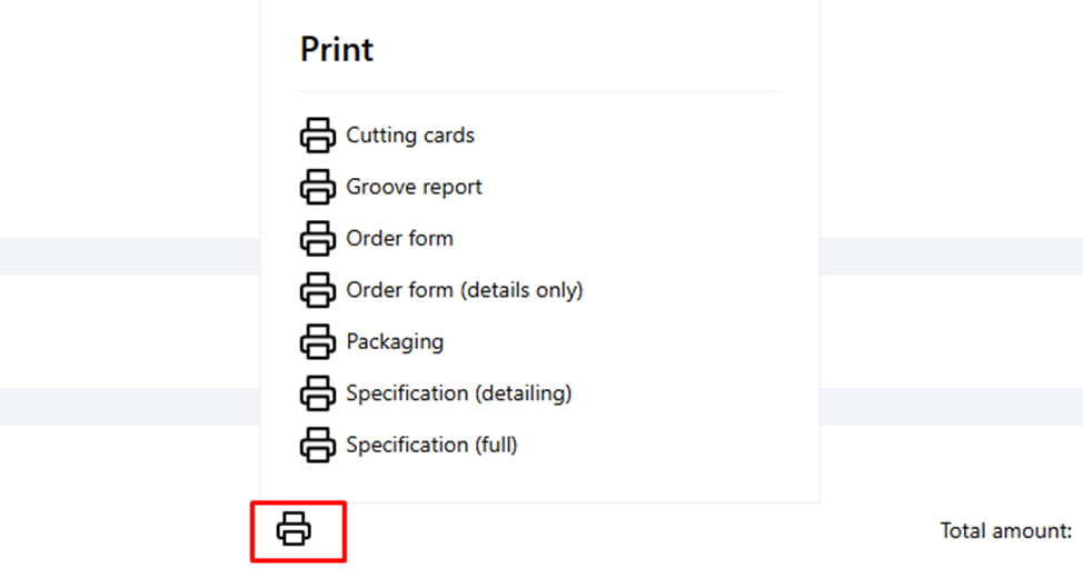 Über die Schaltfläche „ Drucker “ können Sie bei der Bestellung auf alle Formulare und Berichte zugreifen . Zum Beispiel: