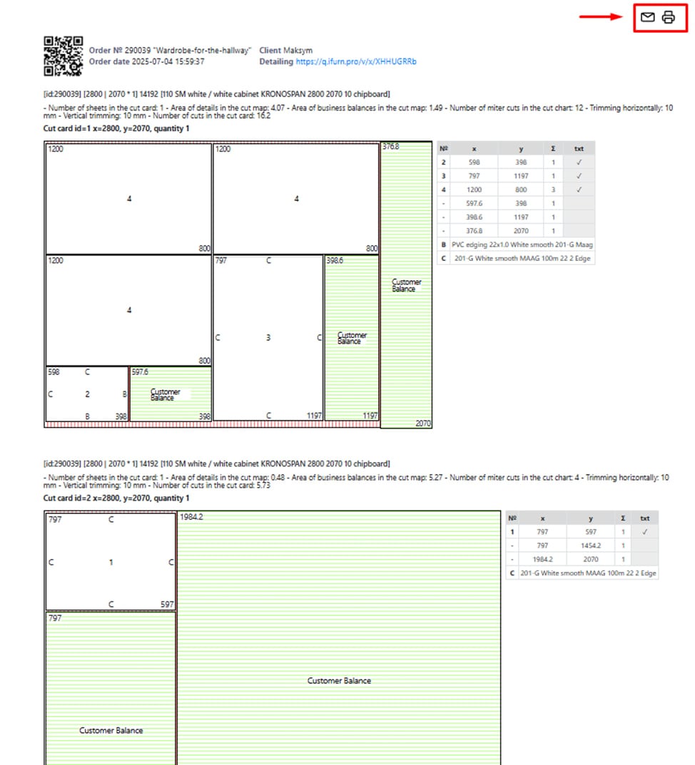 - Schnittkarten sind Berichte, die einzelne Schnittdiagramme für jedes im Projekt verwendete Materialblatt enthalten.