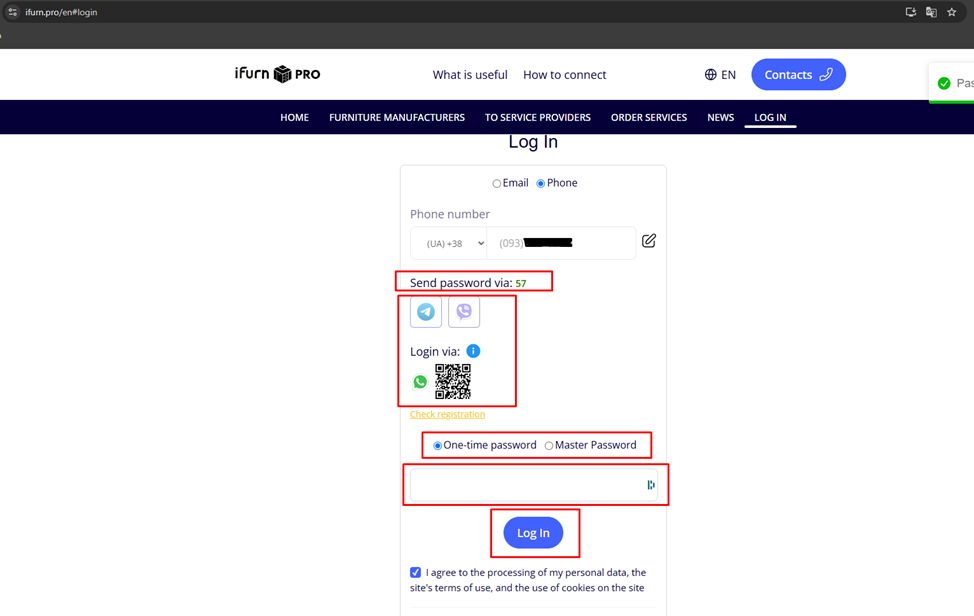 1. Gehen Sie zur Anmeldeseite von iFurn Pro .