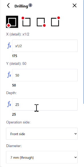 Mit der Bohroperation in der Benutzeroberfläche können Sie manuell Löcher bohren.