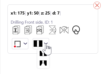 Abhängig von der gewählten Seite Details Abhängig von der Bohrtiefe und der Bohrtiefe ermöglicht Ihnen das System die Auswahl einer der möglichen Bohroptionen.