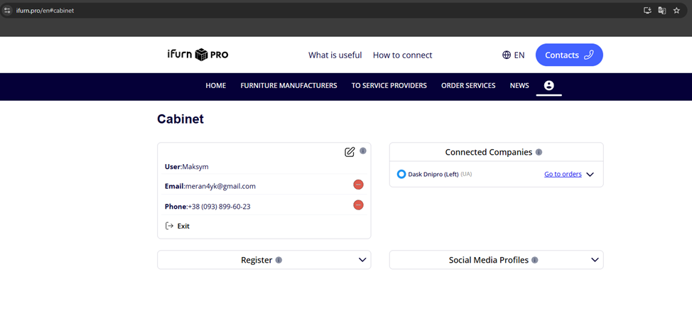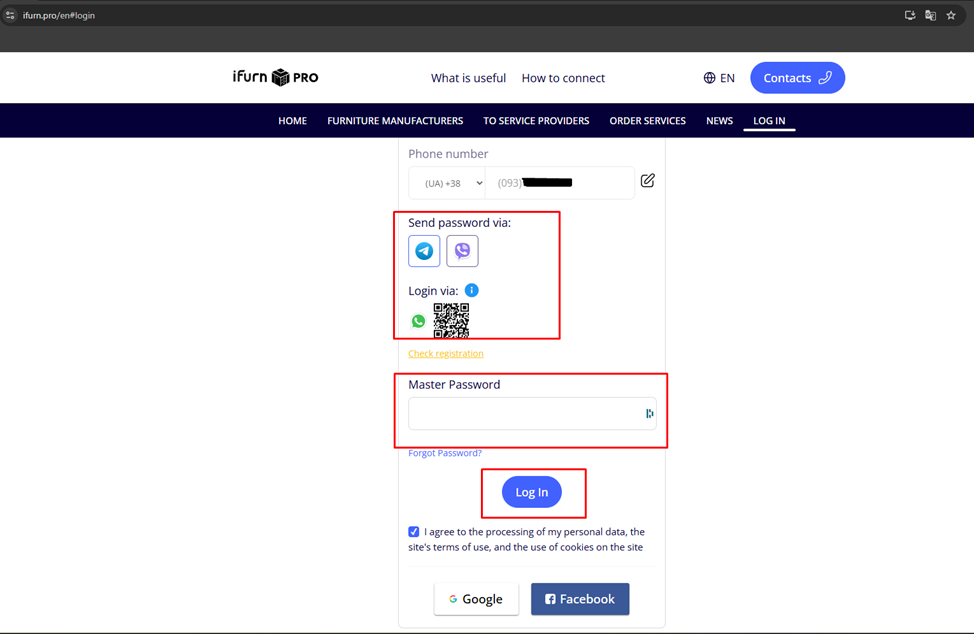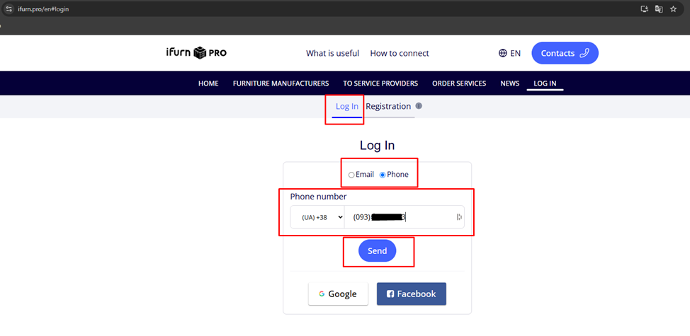 - Öffnen Sie Ihren Browser und geben Sie die Websiteadresse von iFurnPro ein.
