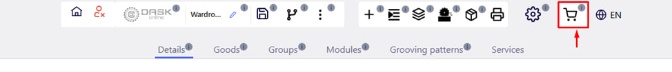 - Klicken Sie auf die Schaltfläche in Form eines „ Warenkorbs “ in der oberen rechten Ecke, um die Bestellung zu berechnen .