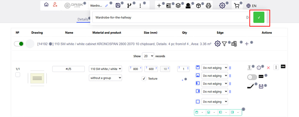 Geben Sie einen neuen Namen ein und klicken Sie auf die grüne Schaltfläche rechts.