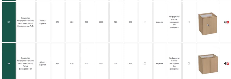 Products are pre-designed modules (e.g., cabinets, cabinets, shelves) containing a ready-made set of parts, which, after entering parameters, are automatically calculated and added to the project as a regular cut .