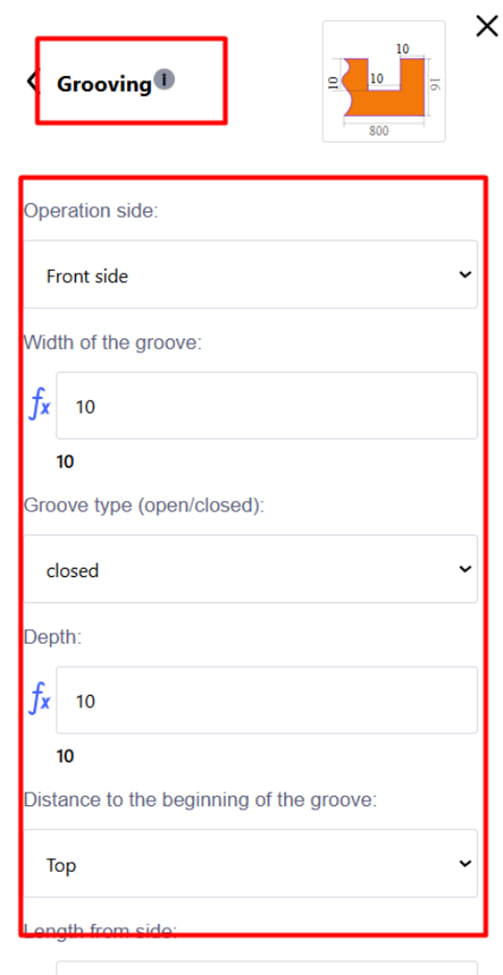Click the blue " Add " button to confirm the operation. After that, the groove will automatically appear on the part drawing.