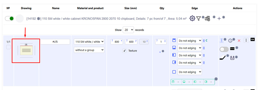 In order to see directly on the part the settings of the end section that you entered, you need to click on the drawing of the part .