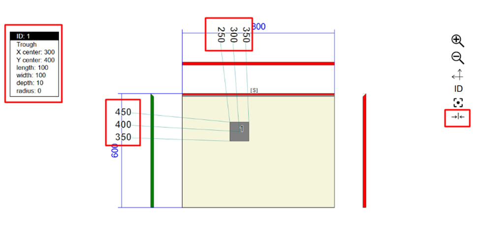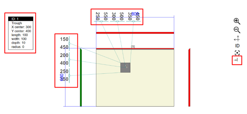 When you click on it, it changes the measurement direction of the coordinate system, which updates the displayed coordinates and dimensions. This results in listed values on the left (vertical coordinates) and on the top (horizontal coordinates), reflecting the new orientation direction .